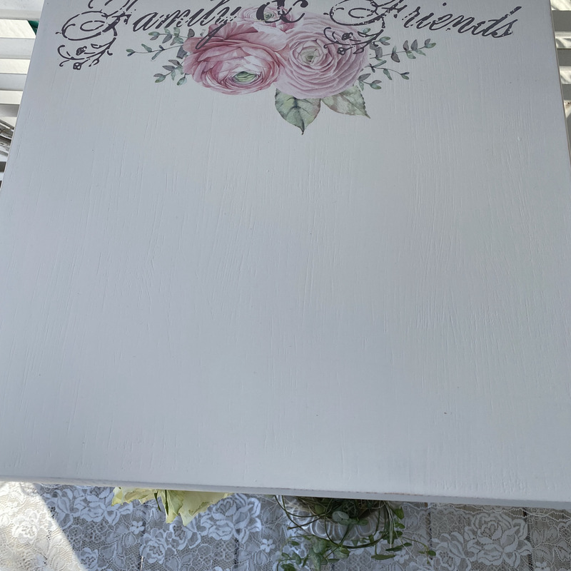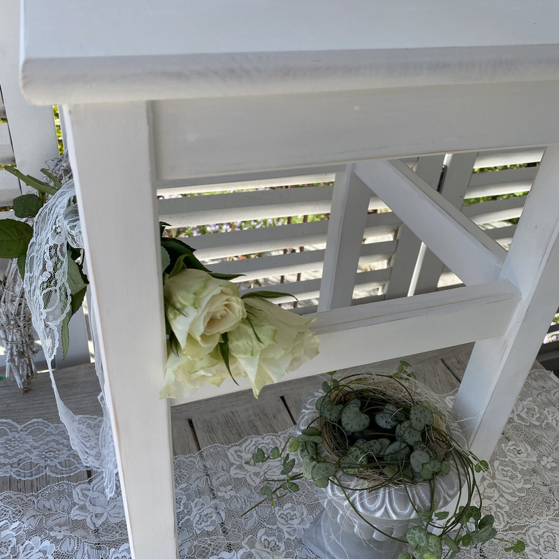 Mit weisser Farbe und einem hübschen Rosen-Print wurde er zu einem absoluten Unikat.