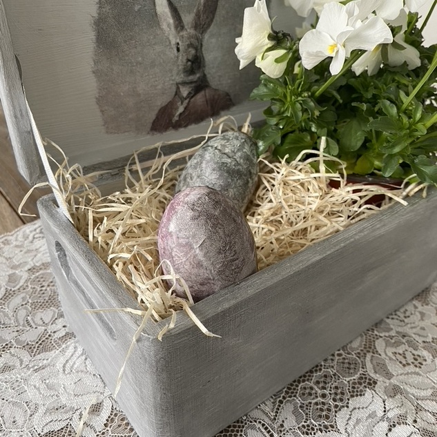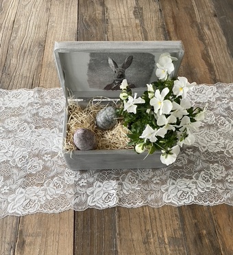 Sie wird inkl. Ostergras und zwei Deko-Eiern verkauft.