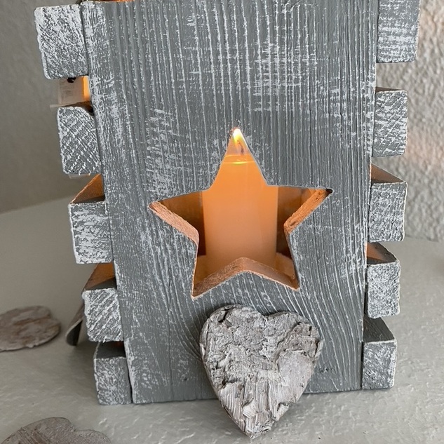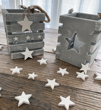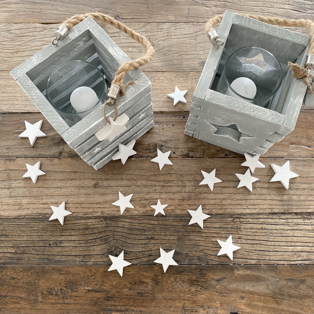 Holzlaternen mit Sternenmotiv für wunderschönes Ambiente in der dunklen Jahreszeit.