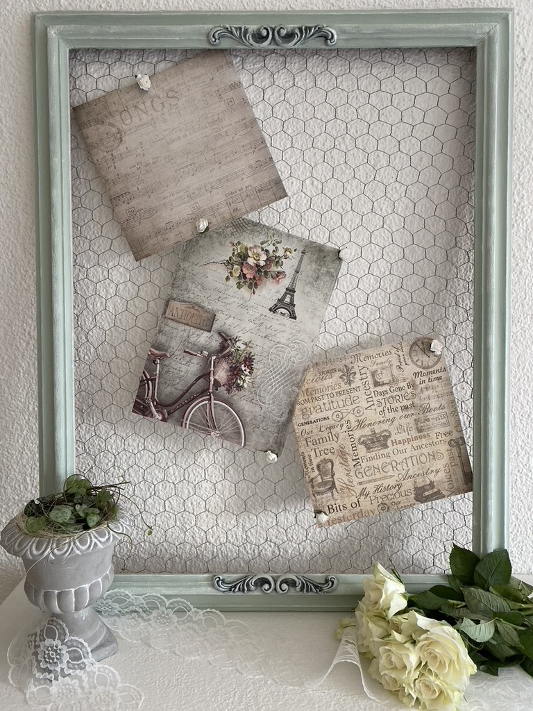 Aus alten Bilderrahmen kreiere ich Pinnwände im romantischen Shabby-Chic Look.