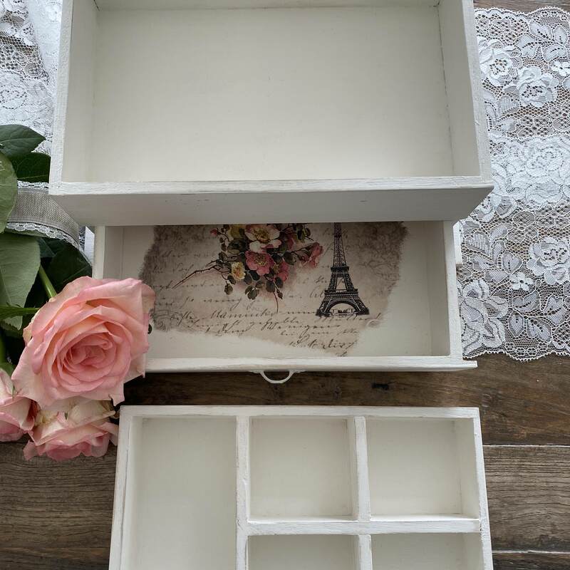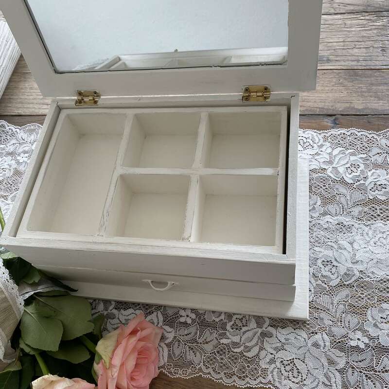 Es ist ebenfalls möglich die Schmuckbox ohne das Schmuckfach zu nutzen, falls sie für grössere Schmuckstücke benötigt werden sollte, welche nicht in der Schublade Platz haben.
